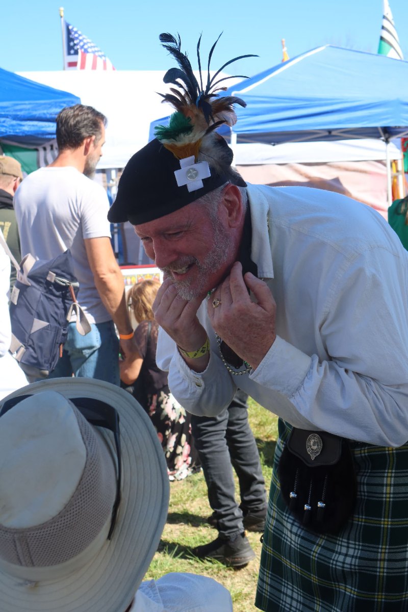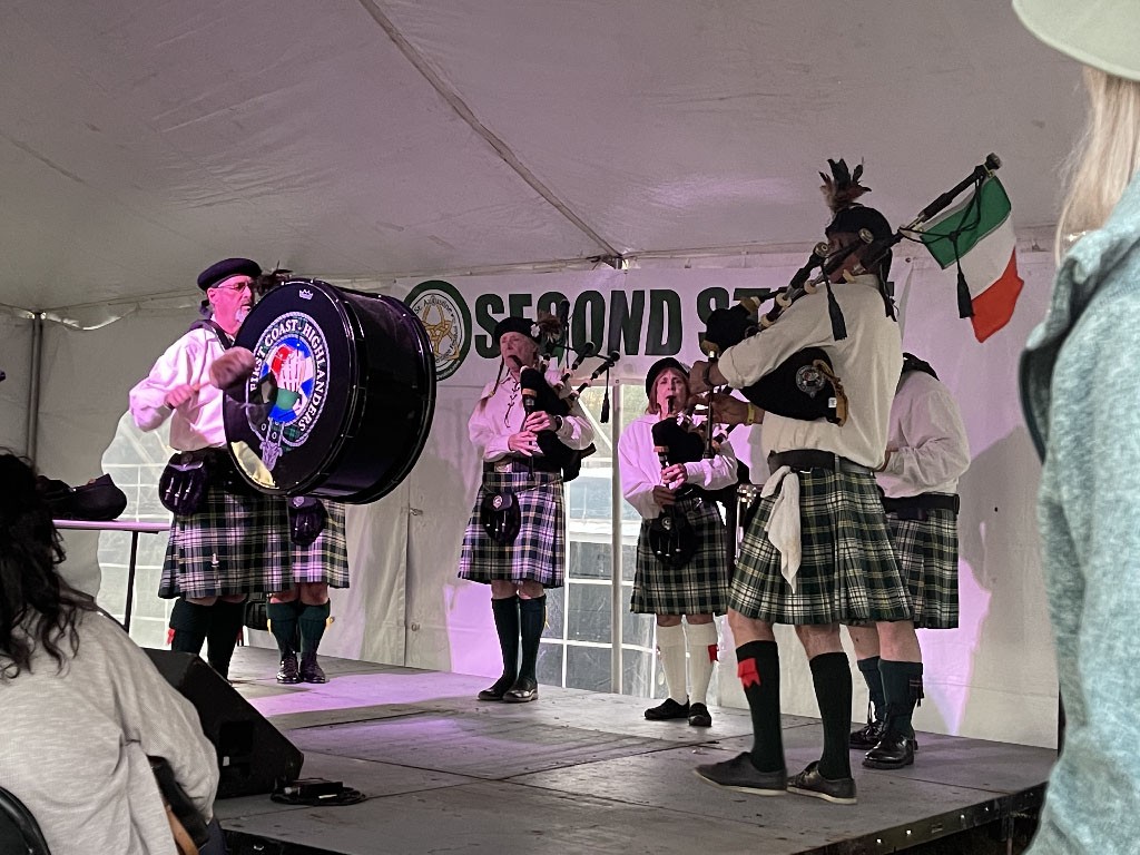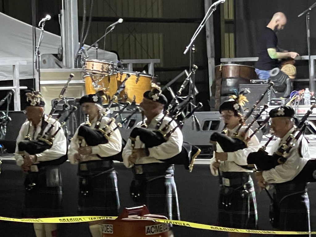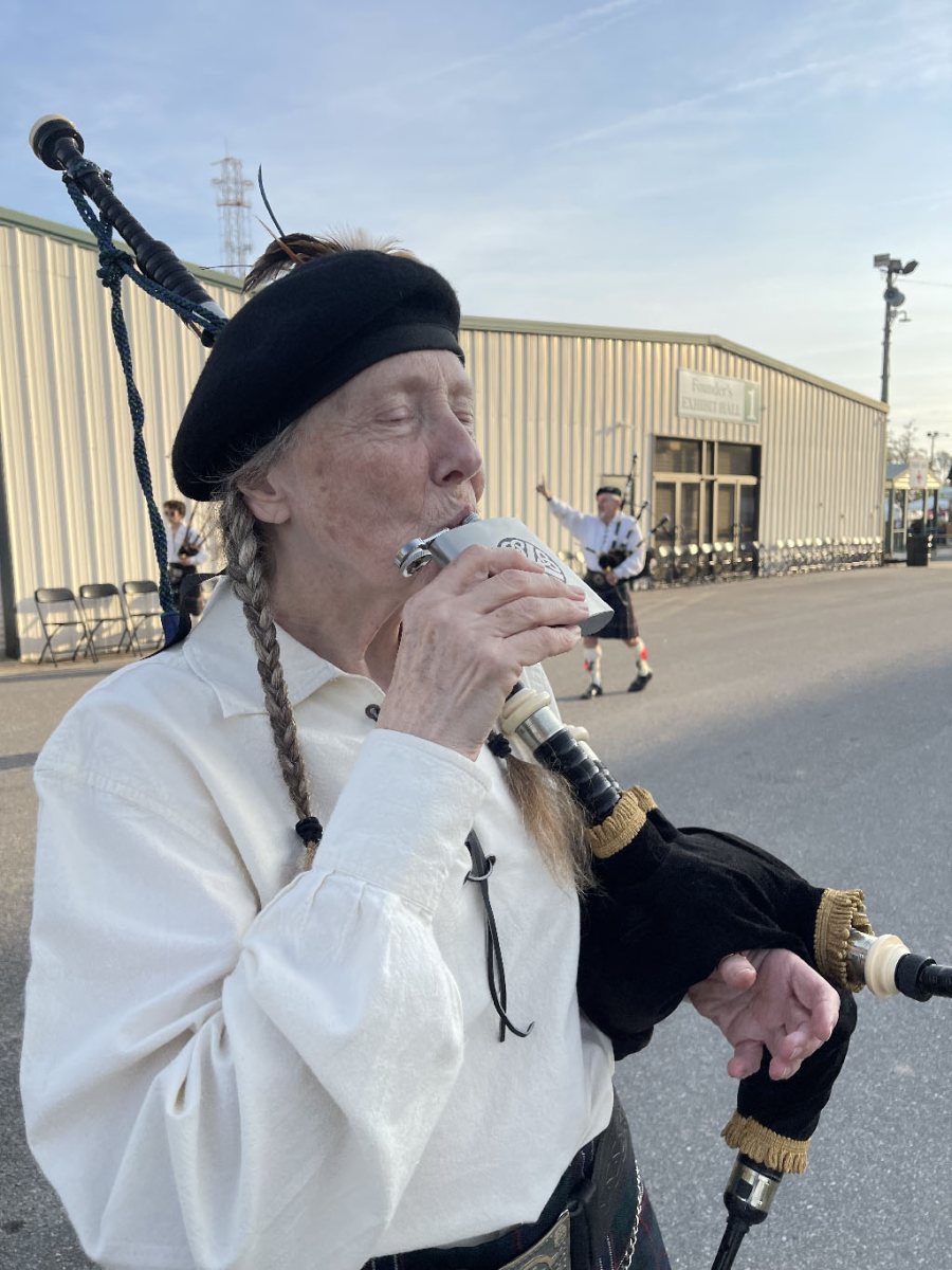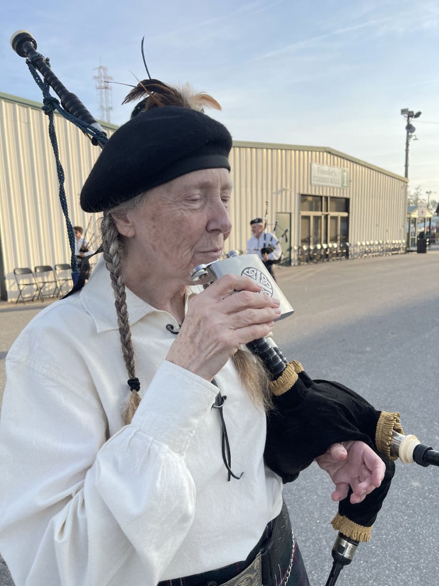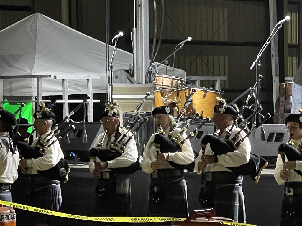 Piper Art Tenney pipes in the Honor Clan at the NEFL Highland Game Sponsors Dinner.