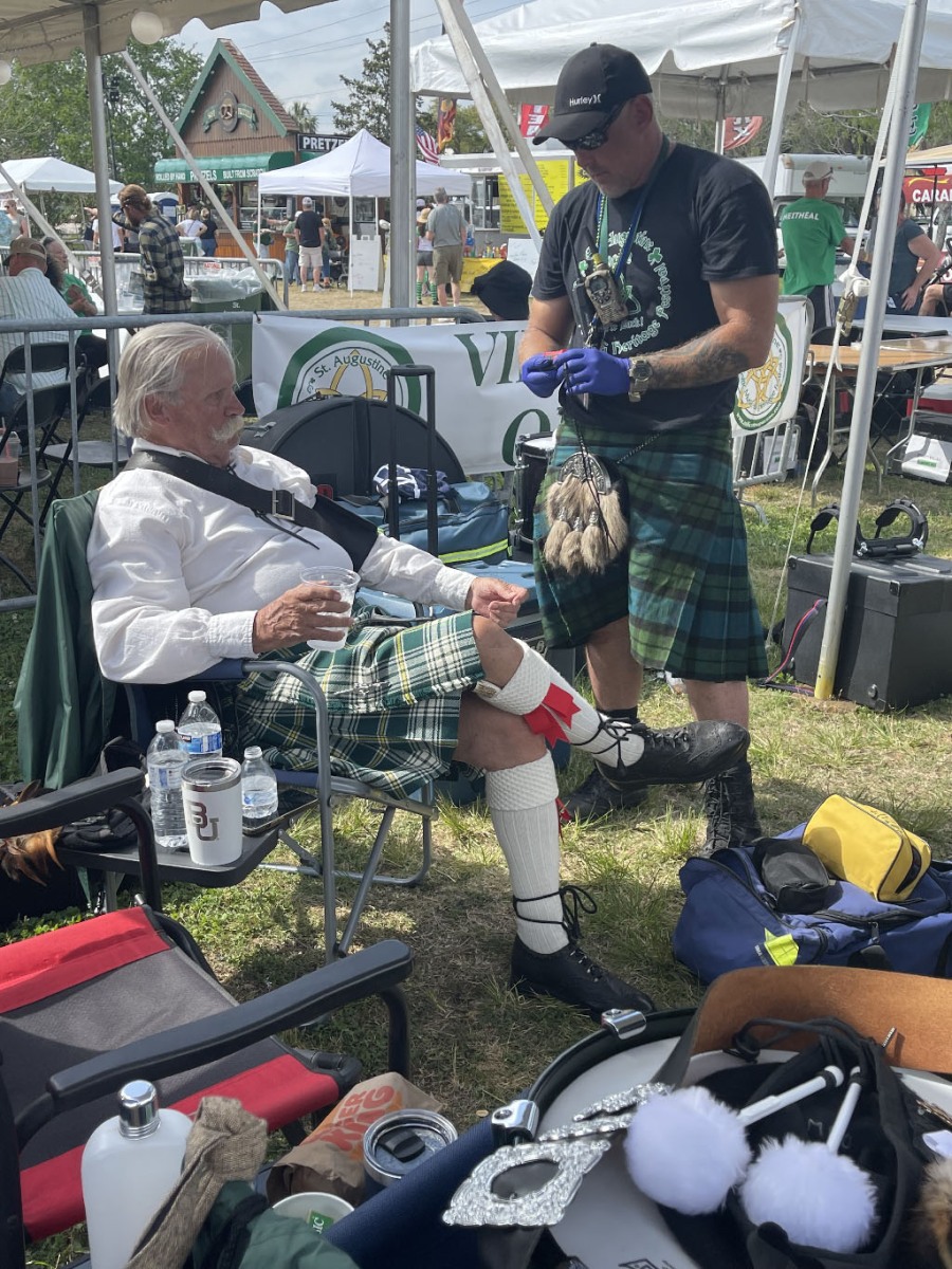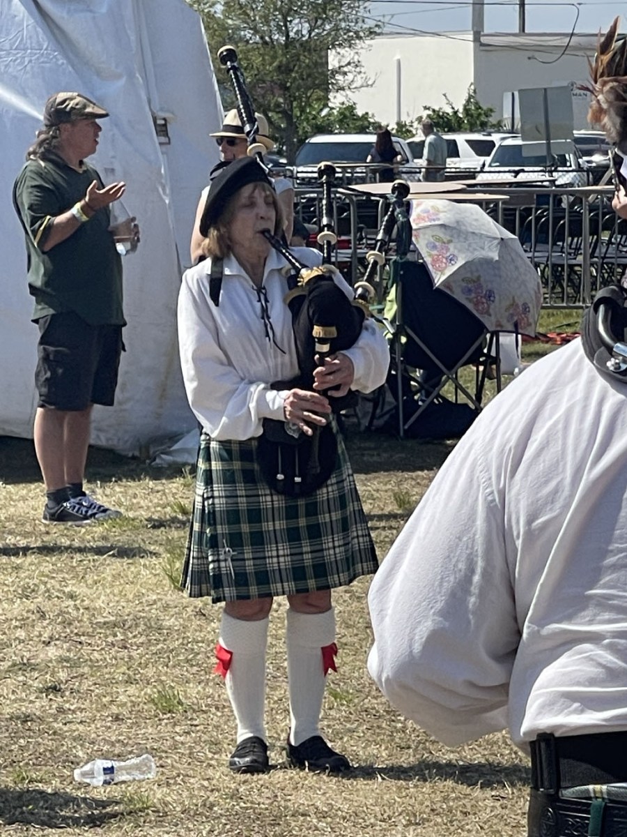 Piper Art Tenney pipes in the Honor Clan at the NEFL Highland Game Sponsors Dinner.
